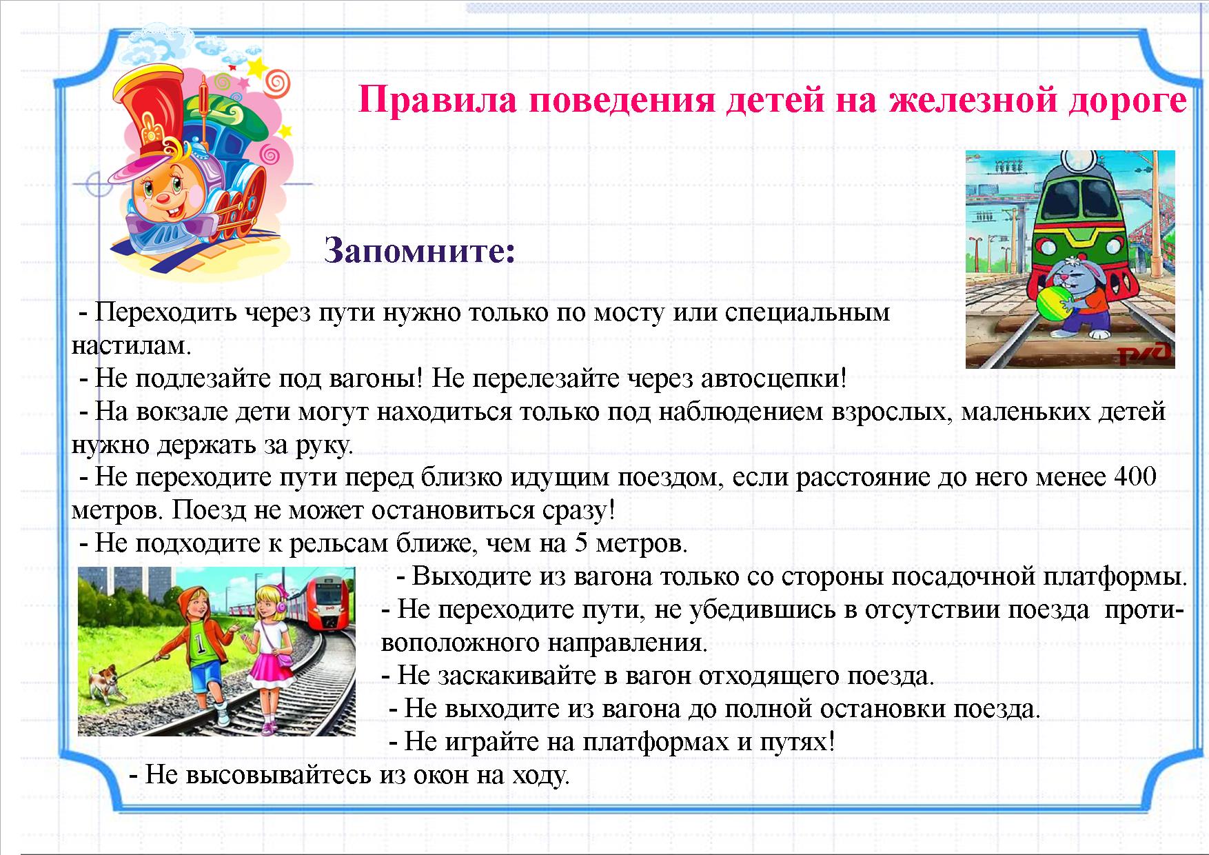 Правила безопасного поведения детей на объектах железнодорожного транспорта